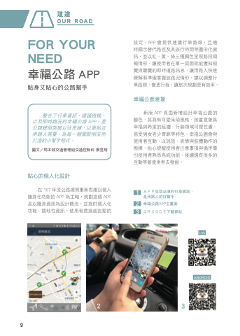 整合了行車資訊,建議路線, 以及即時路況的幸福公路 APP,是 公路總局突破以往思維,以更貼近 用路人需要,為每一個駕駛朋友所 打造的小幫手程式。