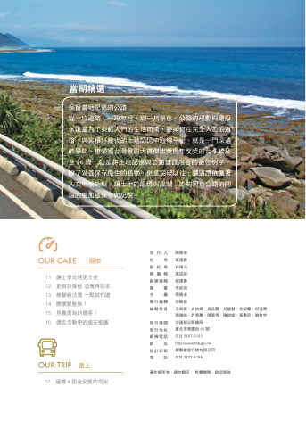 發行地址 臺北市東園街 65 號 總機電話 (02) 2307-0123 網址 http://www.thb.gov.tw 設計印製 鐸聲創意行銷有限公司 電話 (02) 3322-6158